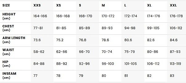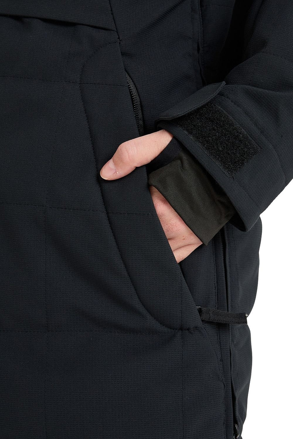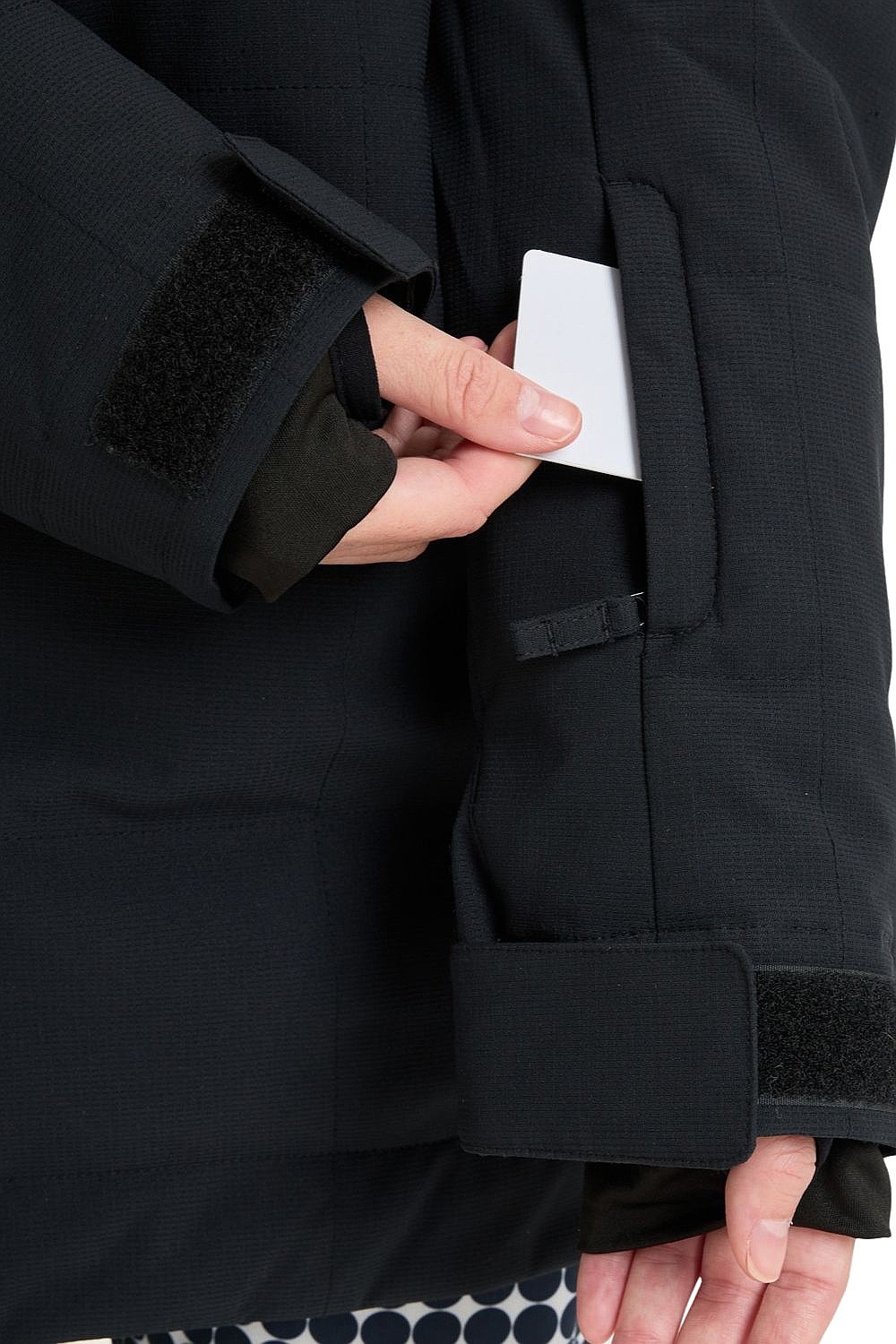 - Manžety: vnitřní návleky s otvory na palce + nastavení rukávů